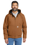 An update to a Carhartt icon-the J130- this dependable, durable jacket was created with input from the hardworking people who wear our gear day in and day out. 12-ounce, 100% ring spun cotton washed duck Quilted nylon lining for easy on and off; 80-gram, 100% polyester 3M Thinsulate featherless insulation for warmth without the weight Attached quilted three-piece hood with drawcord closure Full-length brass front zipper Two interior pockets: one zippered, one hook and loop Two large hand pockets Pen stall in right pocket Locker loop Elbow pleats for ease of movement Rib knit cuffs and waistband Carhartt-strong, triple-stitched main seams Carhartt label sewn on left pocket Carhartt Warmth Rating Earned: Level 3â¿¿Warmest Loose fit